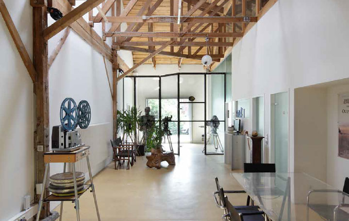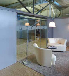Durch die Höhe der Räume bis 5,50 m und die großen Fensterflächen erhalten die Räume die Großzügigkeit eines Lofts. Der Loftcharakter bleibt durch die großzügige Verwendung von Glas im Innenausbau auch bei Kleinteiligkeit der Flächen erhalten.